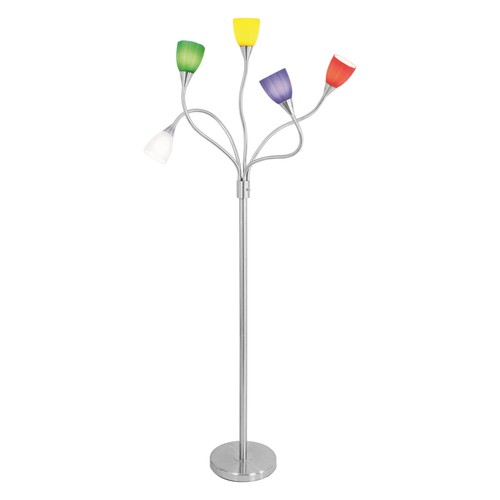 The Medusa® lamp’s popularity is unsurpassed! This versatile lamp provides a bold statement in any room and adapts to your need for function paired with style. 24-inch goose-neck arms allow you to direct light where you need it. Featuring a black chrome finish on the base and frame and blue glass sconces, the Medusa® by LumiSource takes 25-watt candelabra bulbs.