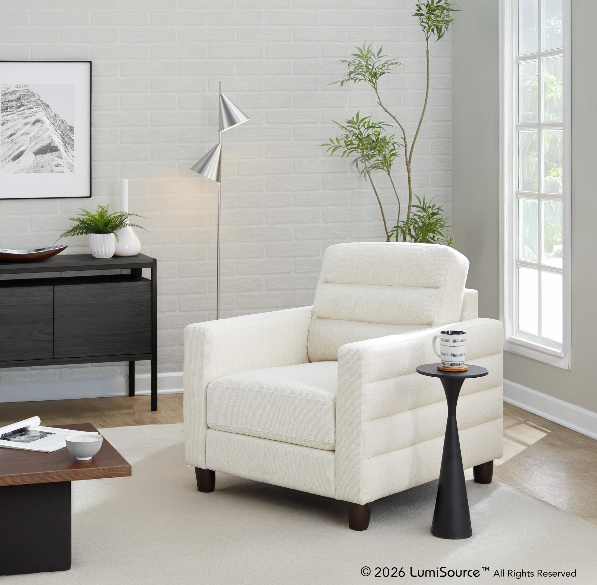 Comfortable and ultra stylish, the LumiSource Willow Armchair is the perfect piece to accent any area. Versatile and sturdy, this contemporary style chair is built to last. Featuring stylish fabric upholstery, unique accent tufted back and arms, and solid wood legs. Available in a variety of upholstery colors, choose the one that suits your space the best.