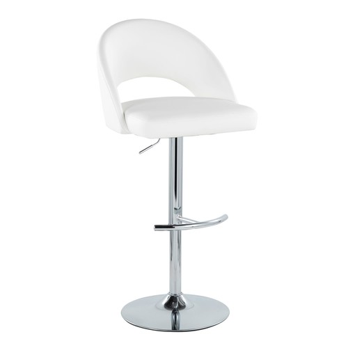 Introducing the Renee Adjustable Barstool by LumiSource where modern style meets unparalleled comfort. With a low rounded backrest, comfortable upholstery, and metal base with a rounded footrest, it's the perfect piece for your contemporary dining or bar area. The Renee is available in a variety of upholstery options and colors, so select one that suits your space the best!