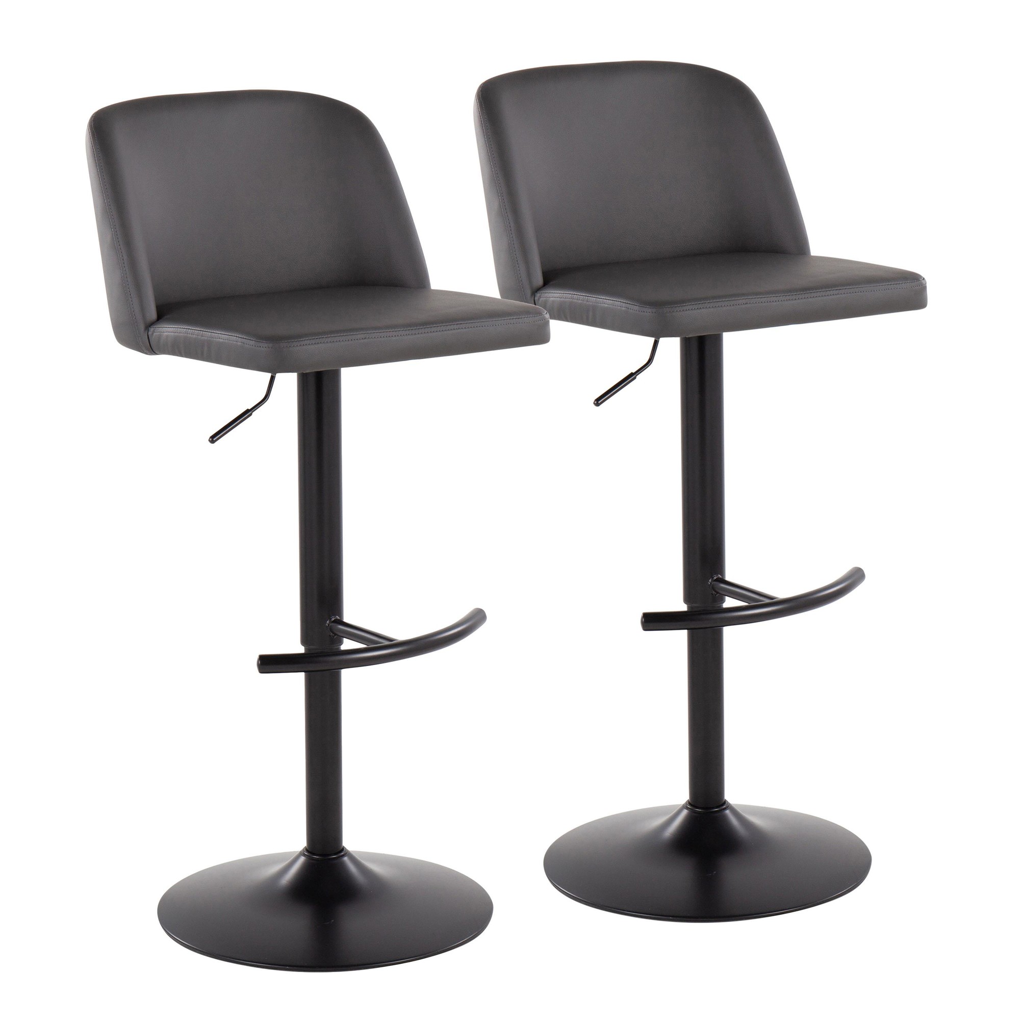 Comfort, modern simplicity, and classic lines define the appealing look of the Toriano Adjustable Bar Stool by LumiSource. A padded upholstered seat sits on an adjustable contemporary inspired pedestal base with a built-in footrest. Available in various colors, choose the one that suits your space best!