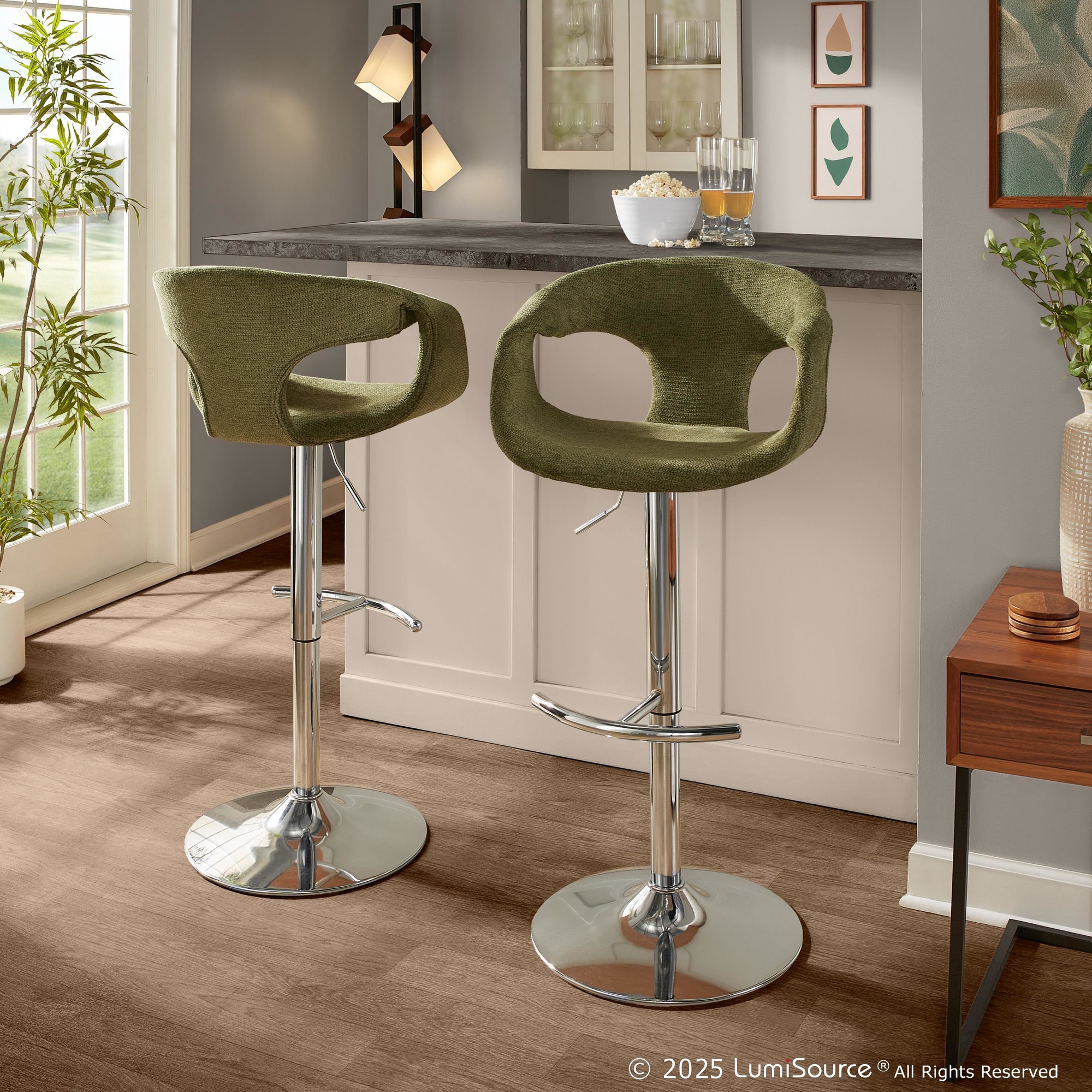 Introducing the Curva Adjustable Barstool by LumiSource, where modern design meets unparalleled comfort. With its stylish, fully-upholstered seat and sleek adjustable metal base, this stool adds a touch of sophistication to any space. The unique cut-out armrests and cushioned seat ensure that style doesn't compromise comfort. Elevate your kitchen or bar area with the perfect blend of form and function!