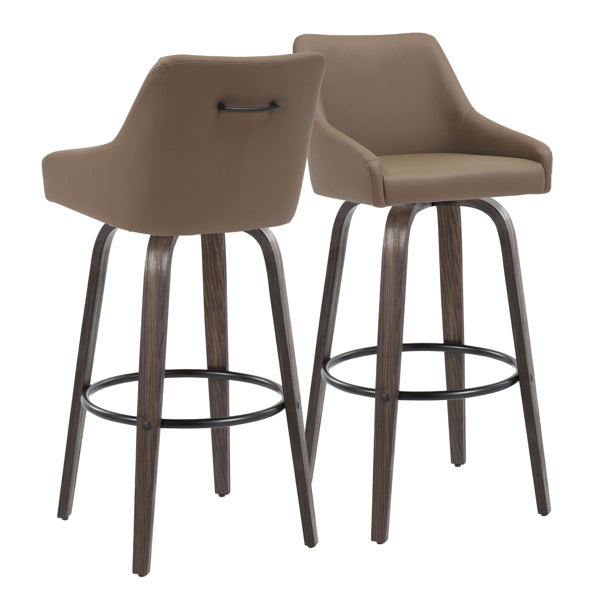 Elegant and simple, the LumiSource Hannah Fixed-Height Barstool will furnish any eating area in style. Featuring sleek bent wood legs, a comfortable padded upholstered seat, and a decorative handle adorning the seat back, the Hannah will elevate any space with its satisfying transitional design. Available in a variety of upholstery colors and finishes, choose the one that fits your space best.