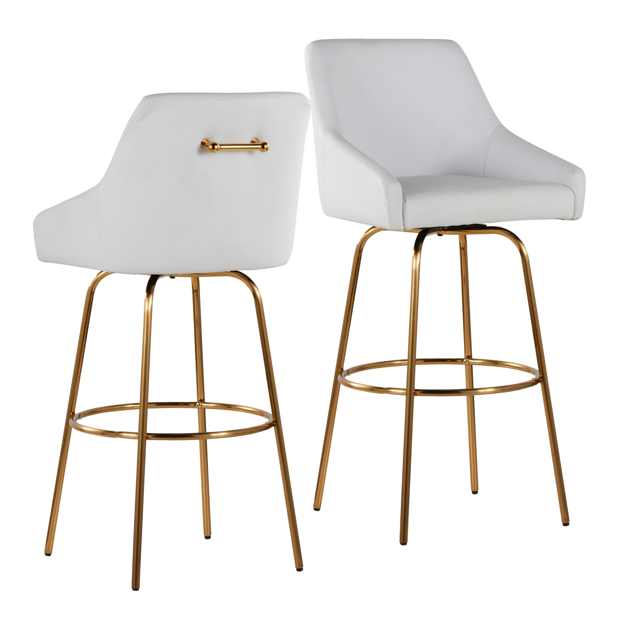 Elegant and simple, the LumiSource Hannah Fixed-Height Barstool will furnish any eating area in style. Featuring sleek metal legs, a comfortable padded upholstered seat, and a decorative handle adorning the seat back, the Hannah will elevate any space with its satisfying transitional design. Available in a variety of upholstery colors and finishes, choose the one that suits your space best!