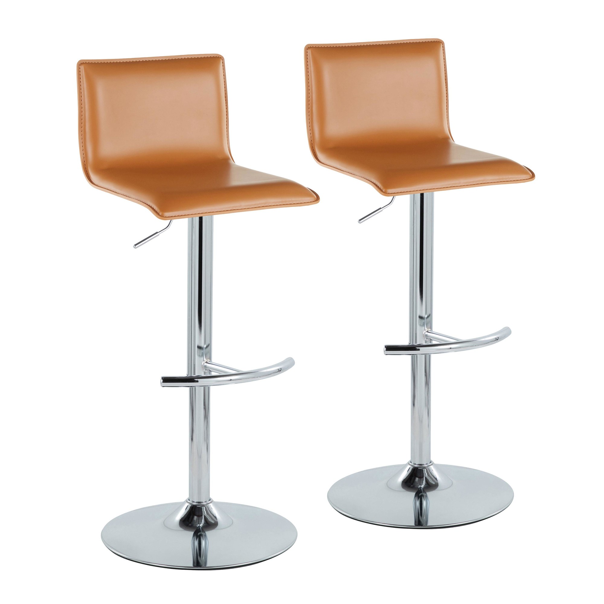Elegant and modern, the LumiSource Mara Adjustable Barstool has a simple design with gorgeous elements. Featuring faux leather upholstery and a metal base with a rounded t footrest, the Mara Adjustable Barstool is perfect for your kitchen or dining area. Sold in sets of two, pick the color that suits your space the best!