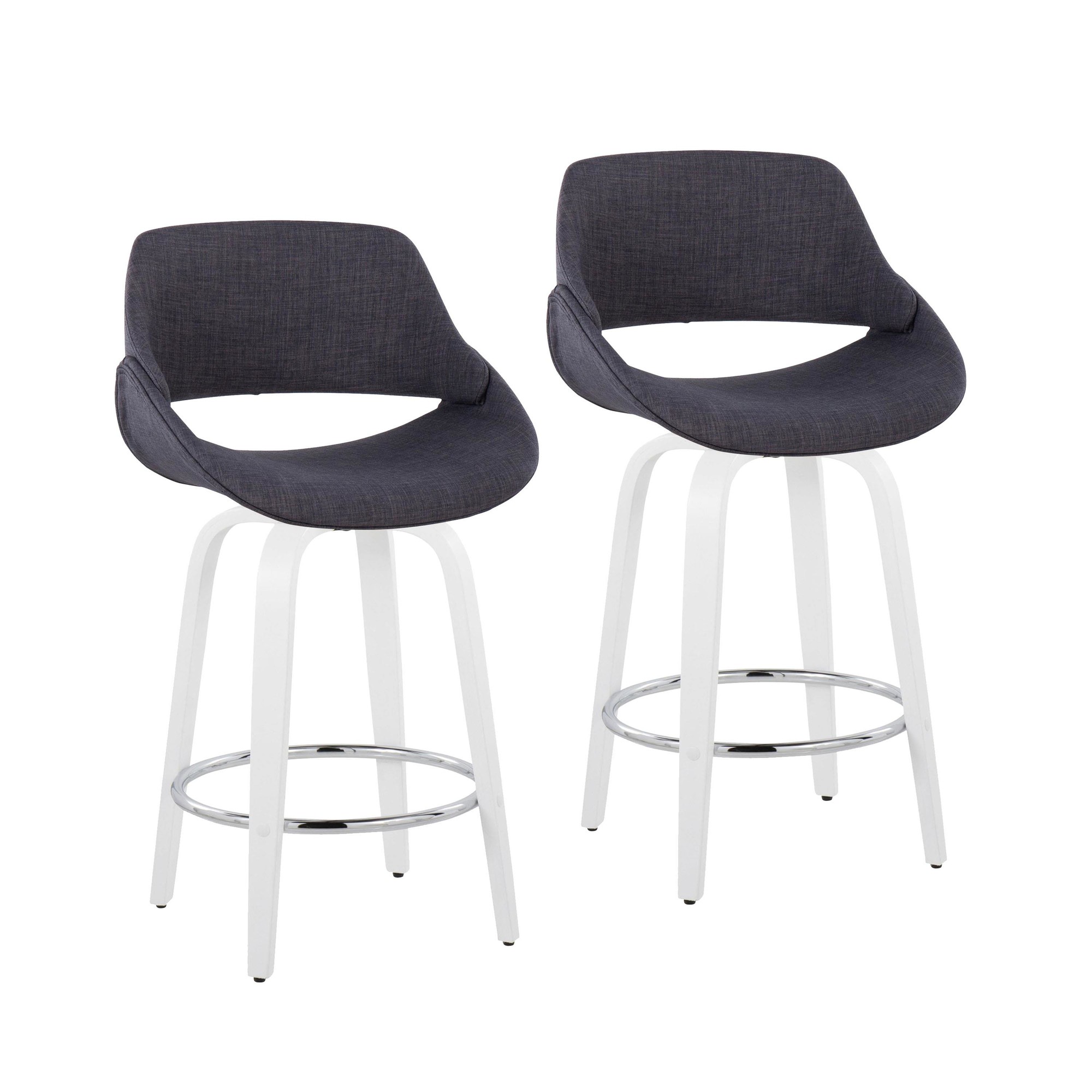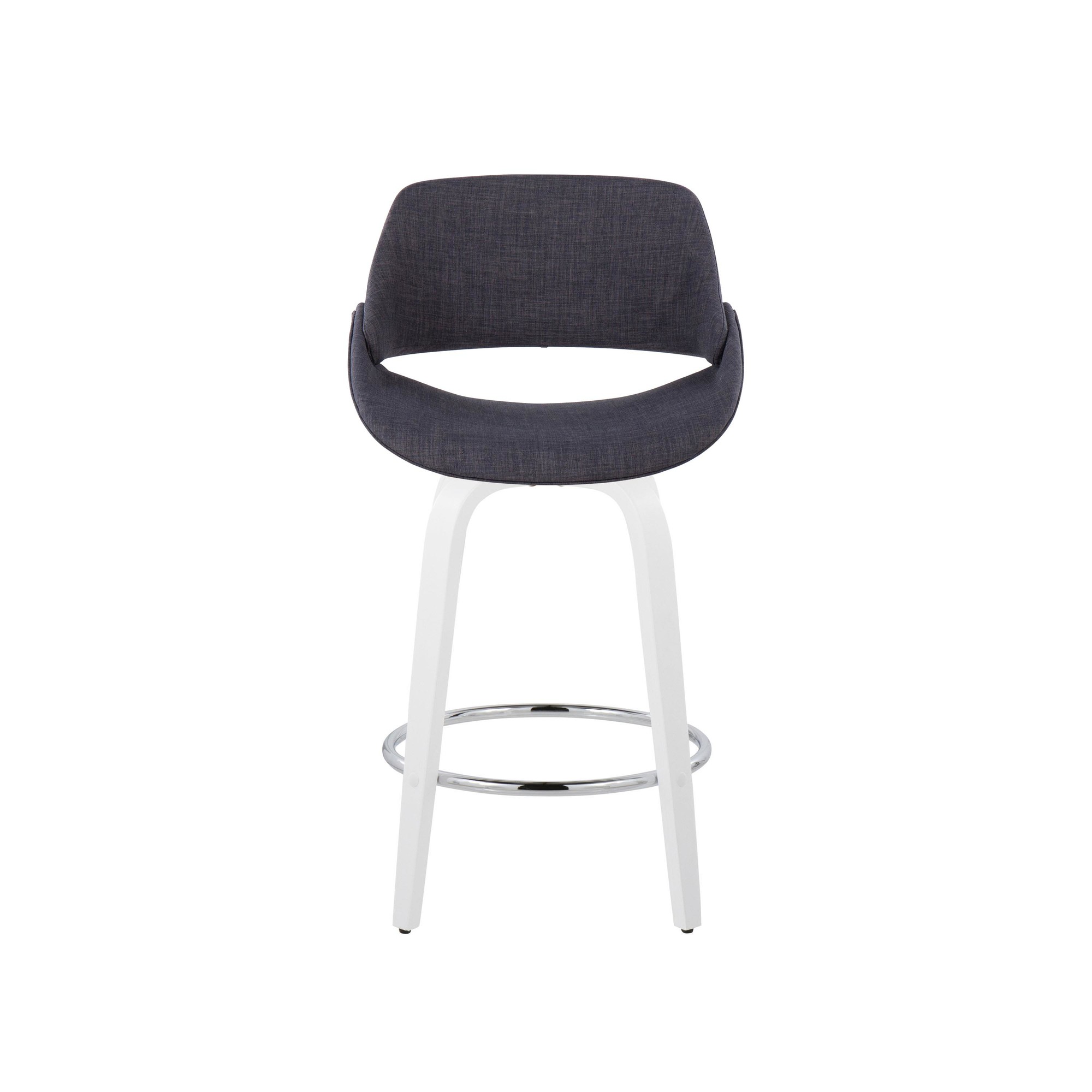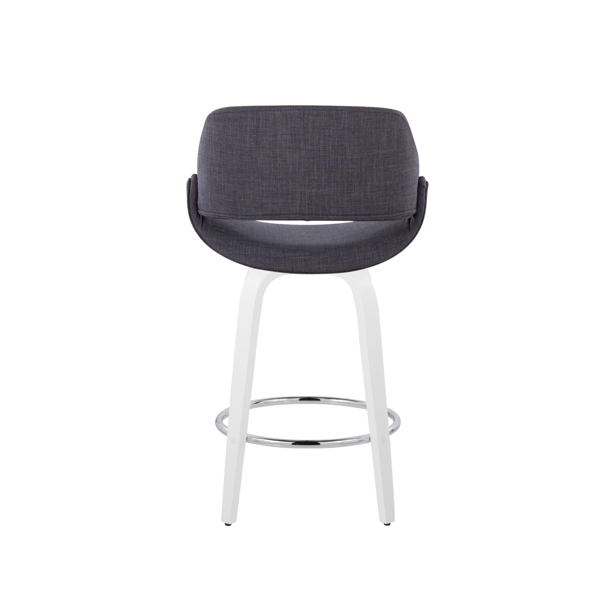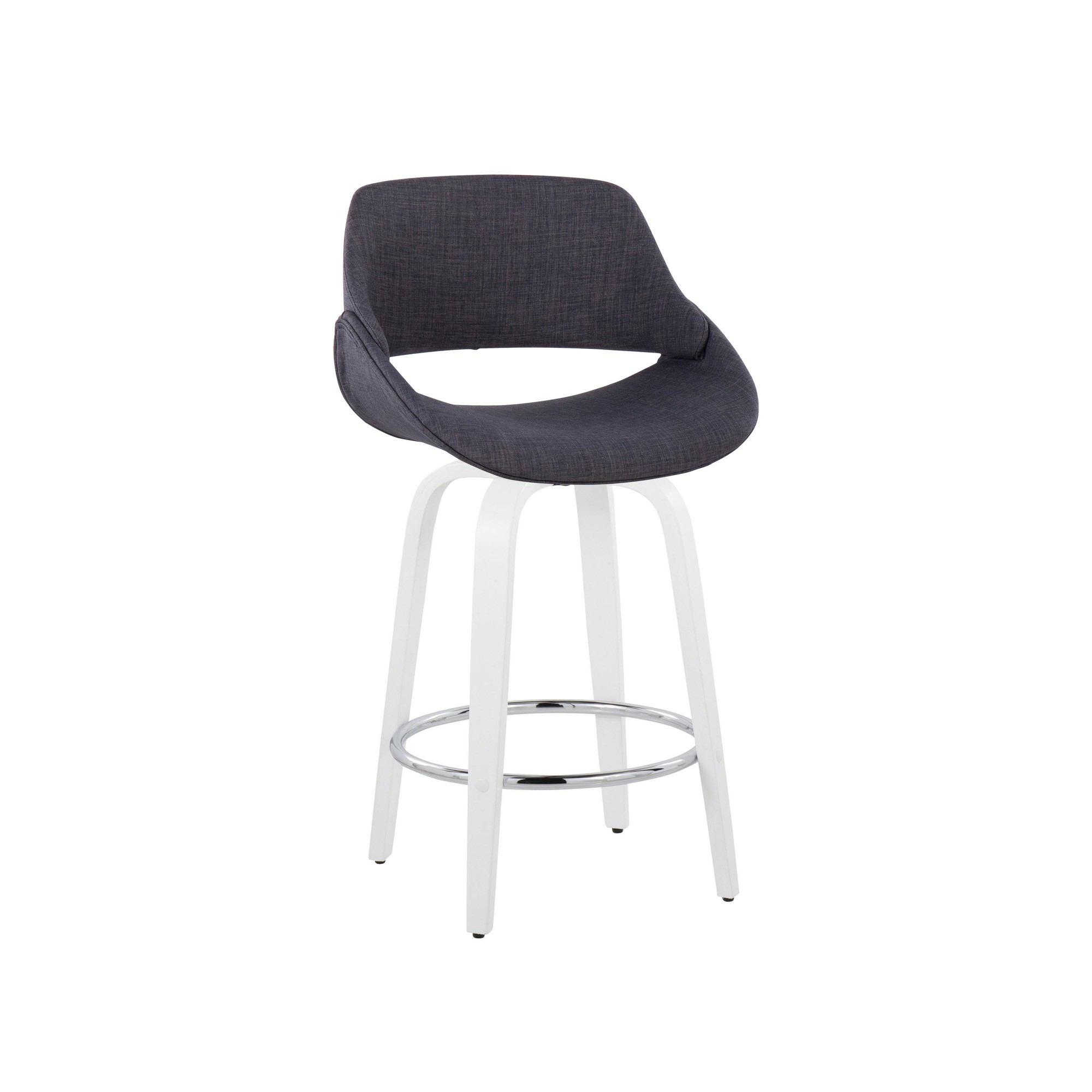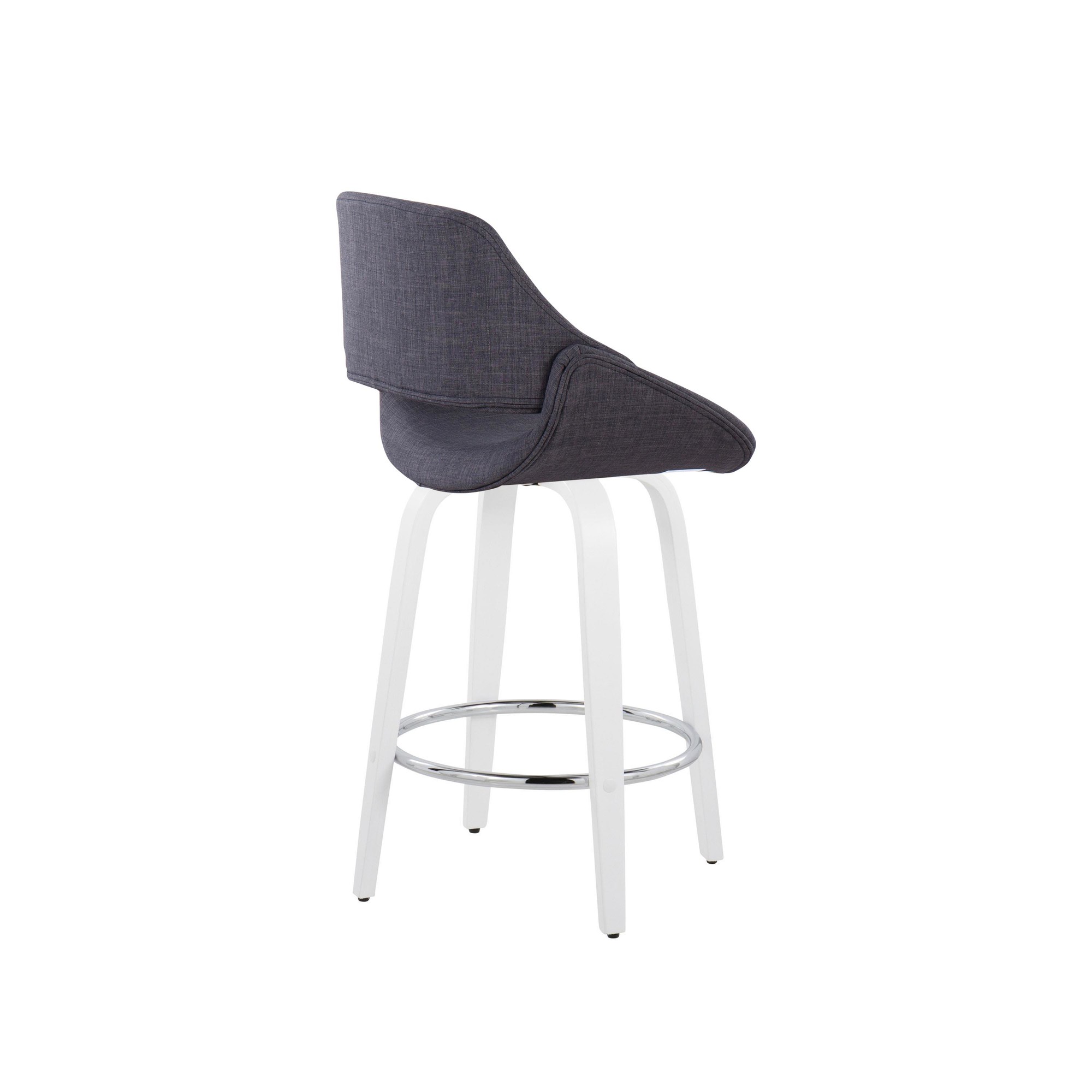 The wide and welcoming seat of the LumiSource Fabrico Counter Stool beckons one to sit and relax. A curved back and contoured upholstered seat is accented by white bent wood swivel legs that add to the stylish yet comfortable design. Available in a variety of upholstery colors that are sure to elevate any space.