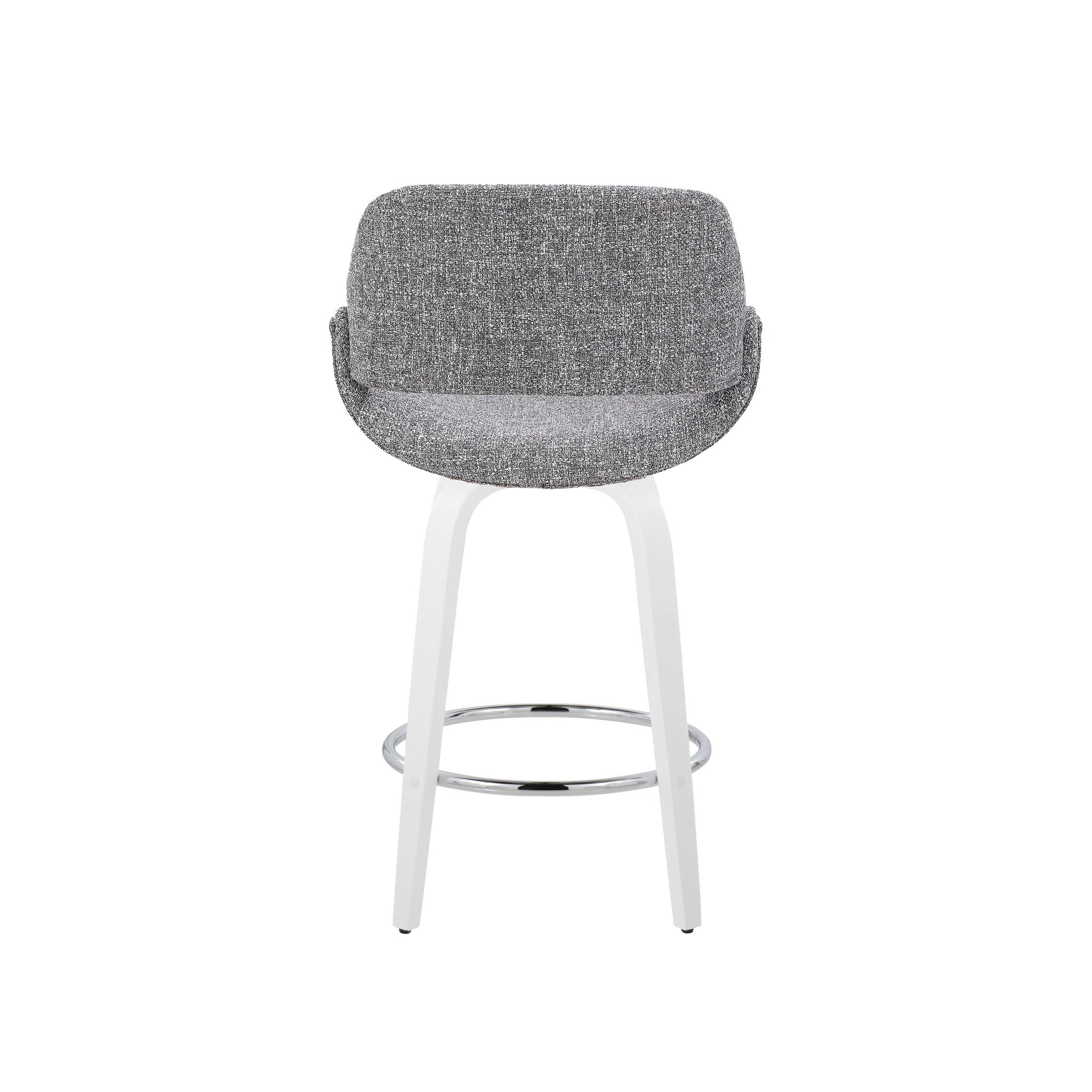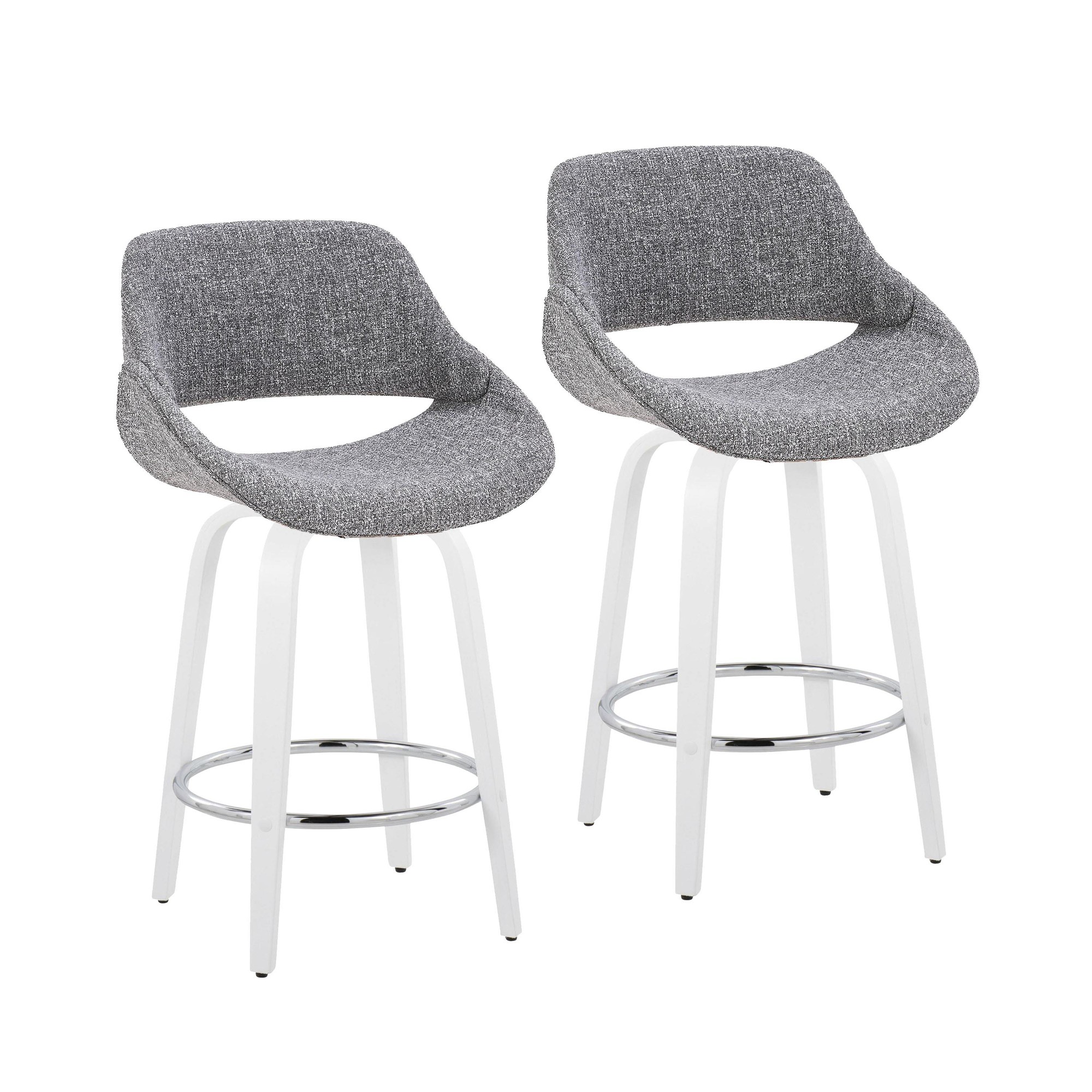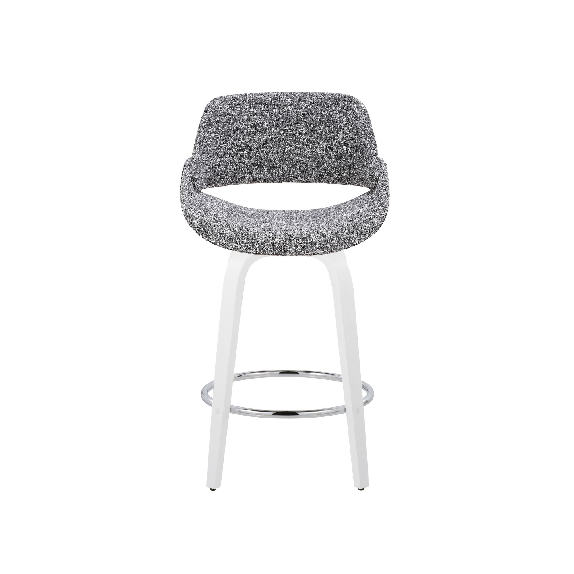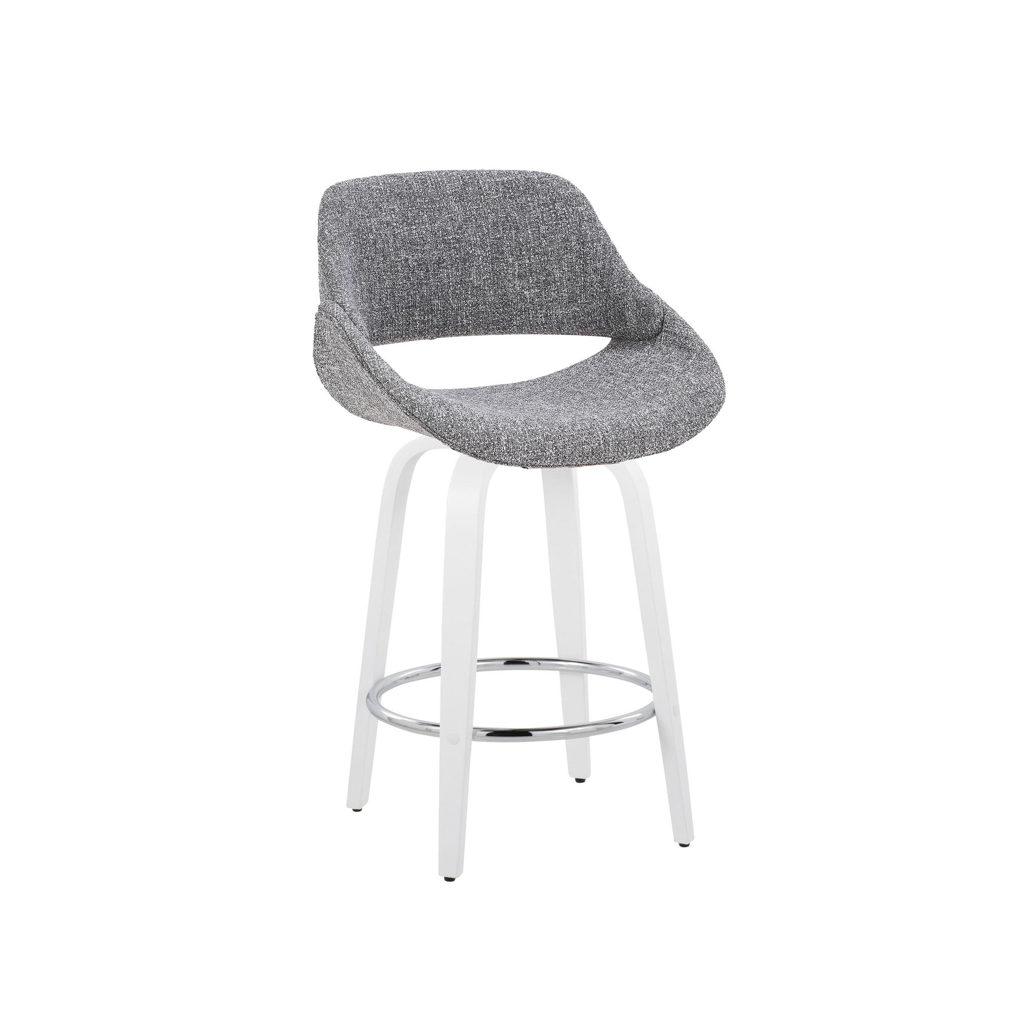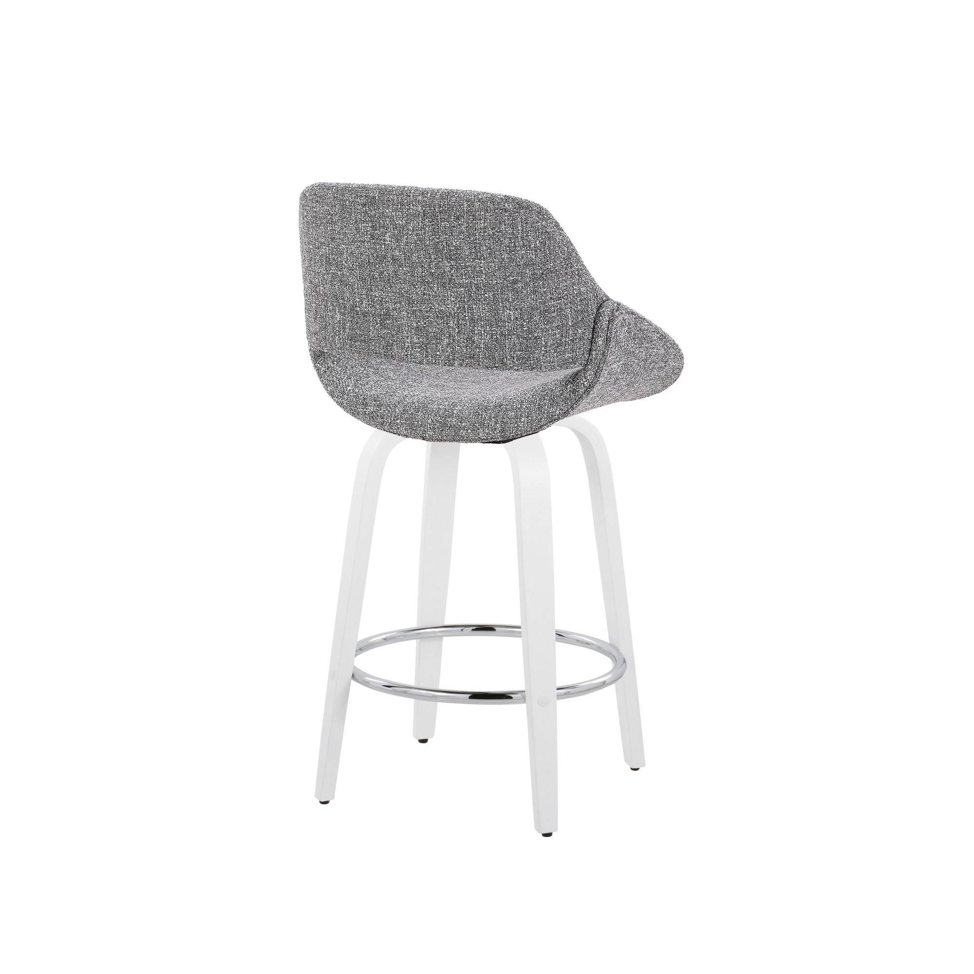 The wide and welcoming seat of the LumiSource Fabrico Counter Stool beckons one to sit and relax. A curved back and contoured upholstered seat is accented by white bent wood swivel legs that add to the stylish yet comfortable design. Available in a variety of upholstery colors that are sure to elevate any space.