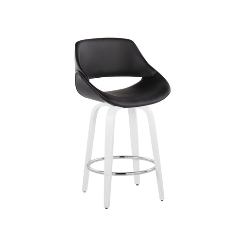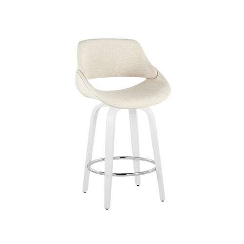 The wide and welcoming seat of the LumiSource Fabrico Counter Stool beckons one to sit and relax. A curved back and contoured upholstered seat is accented by flared bent wood swivel legs that add to the stylish yet comfortable design. Available in a variety of upholstery colors, choose the one that suits your space best.