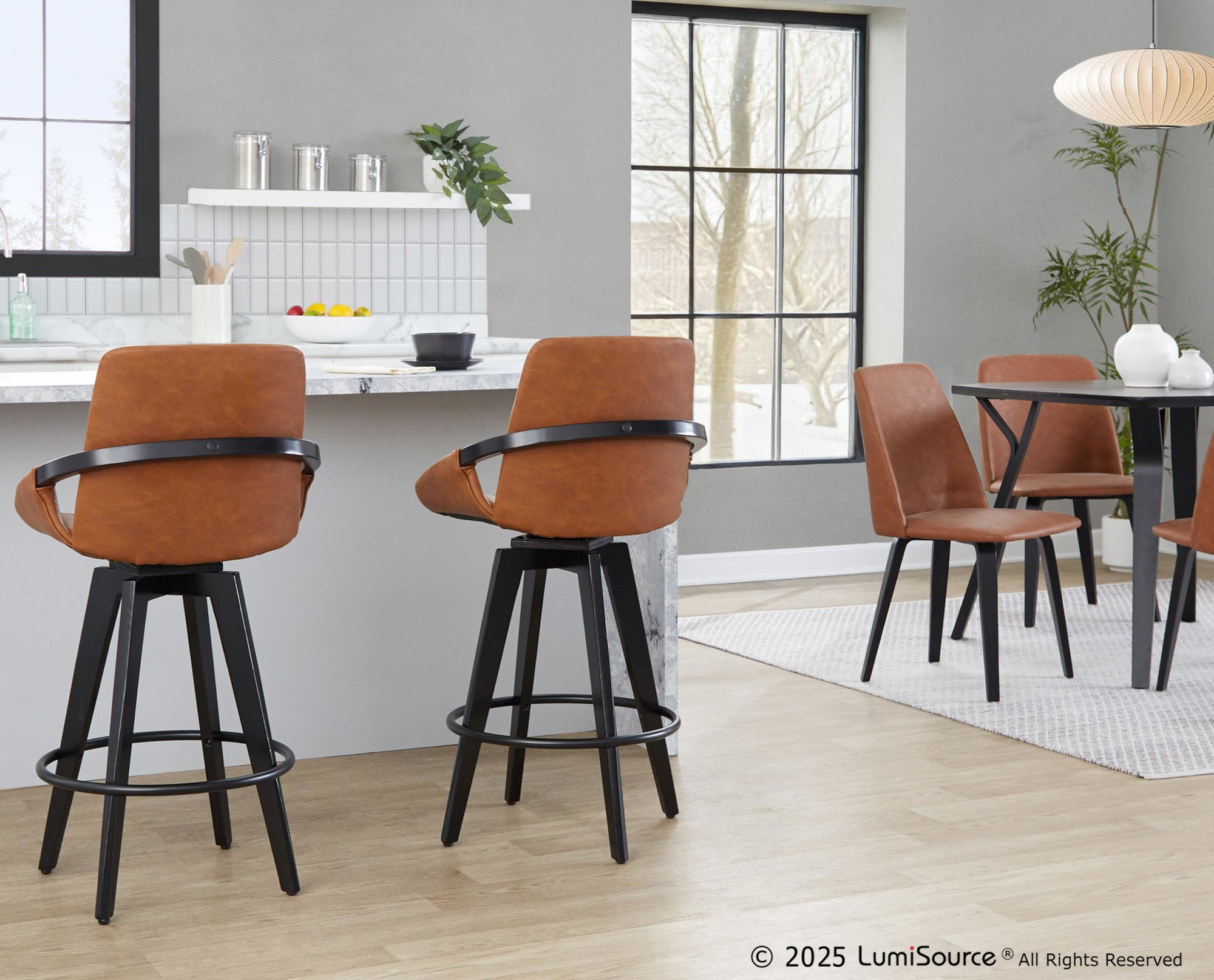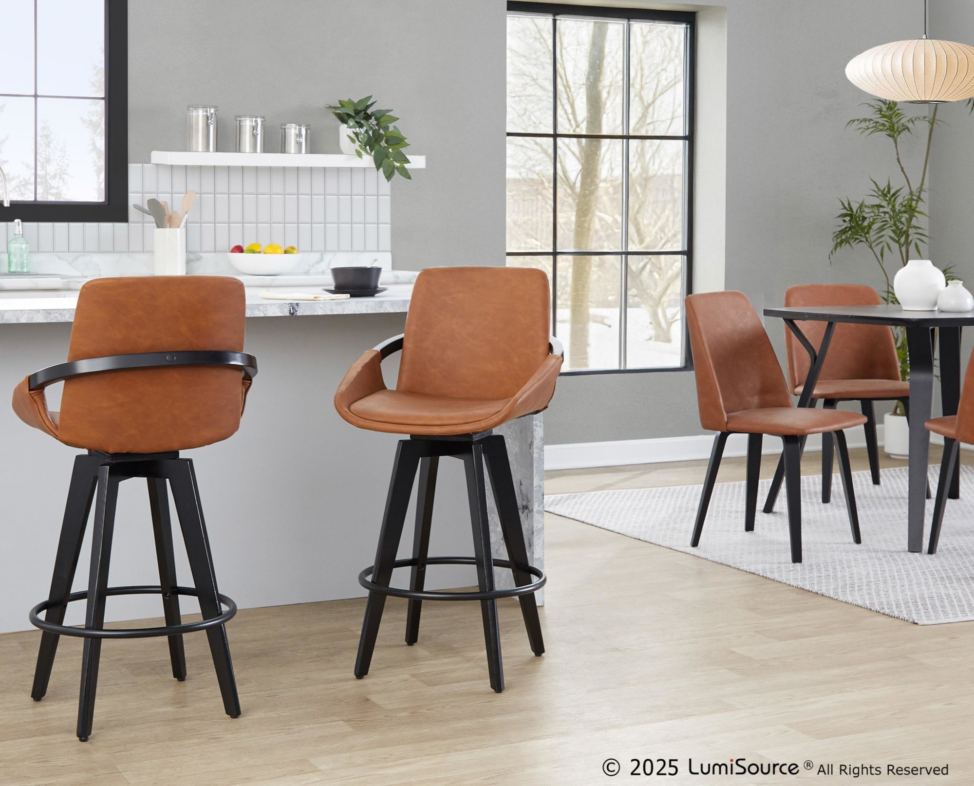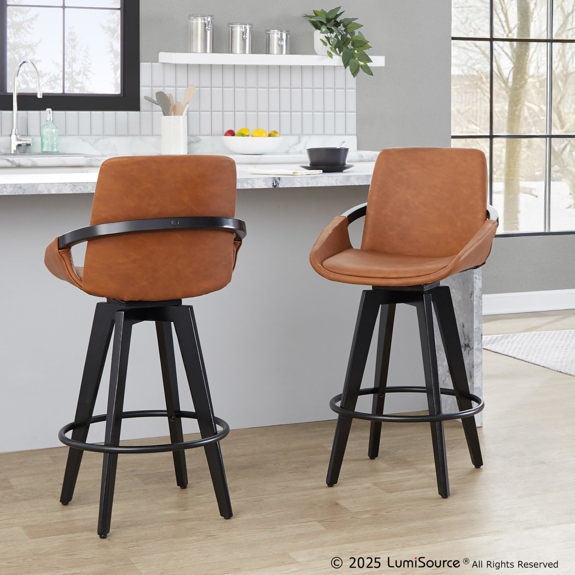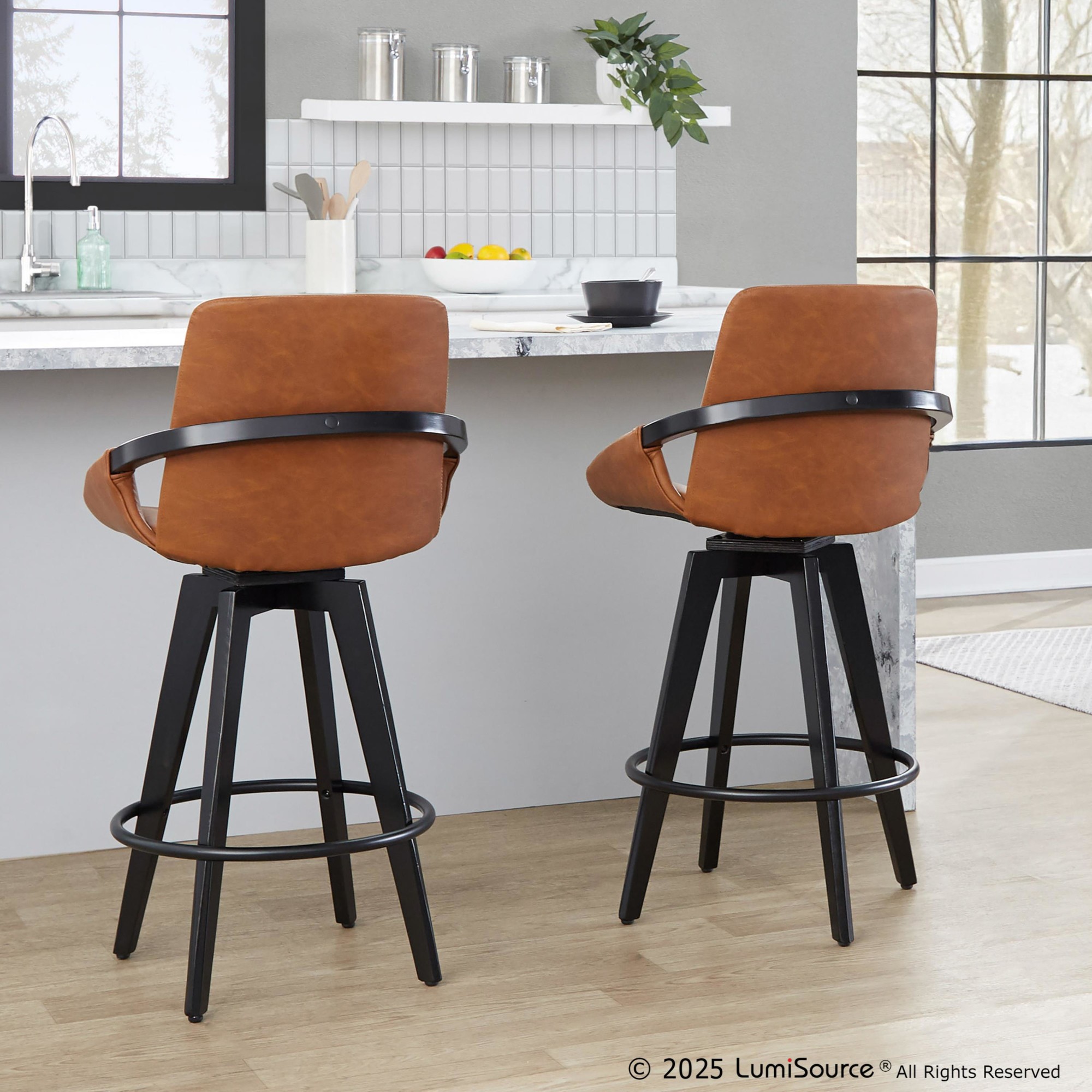 Contemporary inspired, the Cosmo Fixed-Height Counter Stool by LumiSource combines style and comfort! An upholstered seat is accented by stylish black wood armrests and legs, with smooth swivel capability. Available in a variety of color combinations, choose the one that fits your space the best.