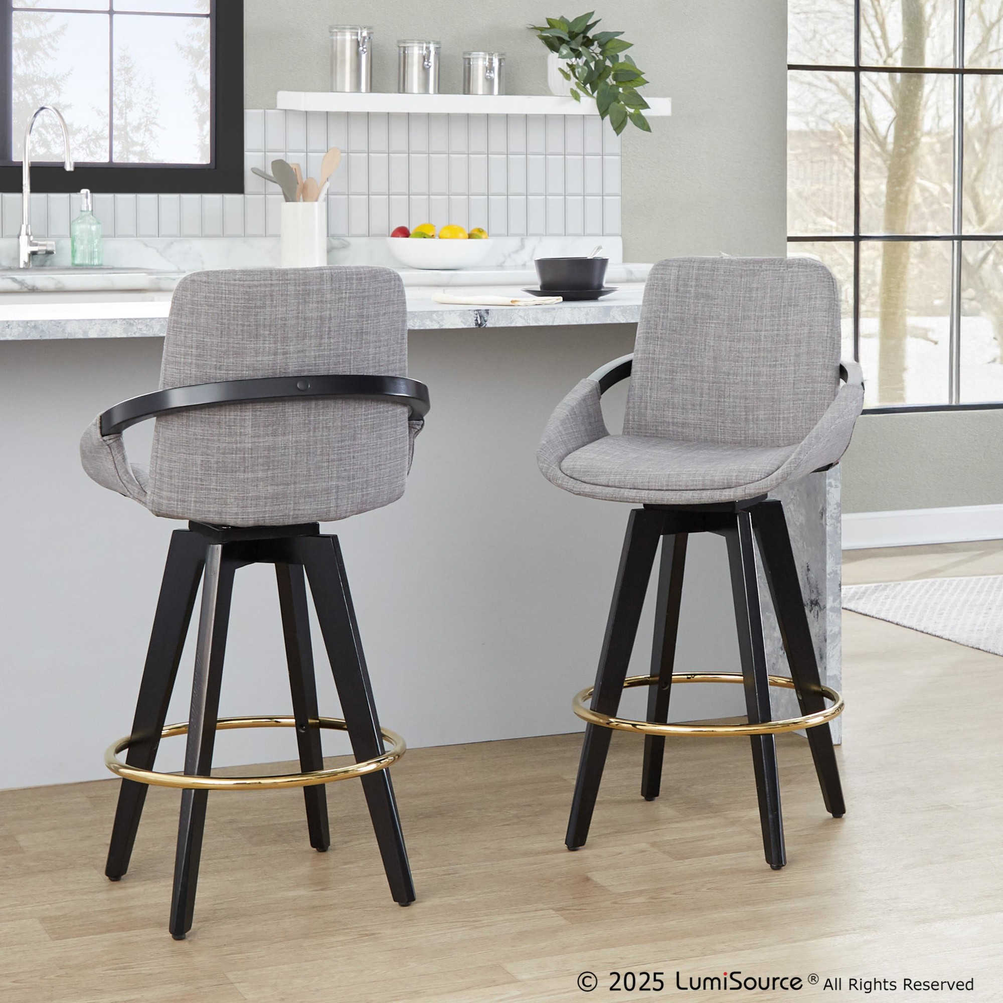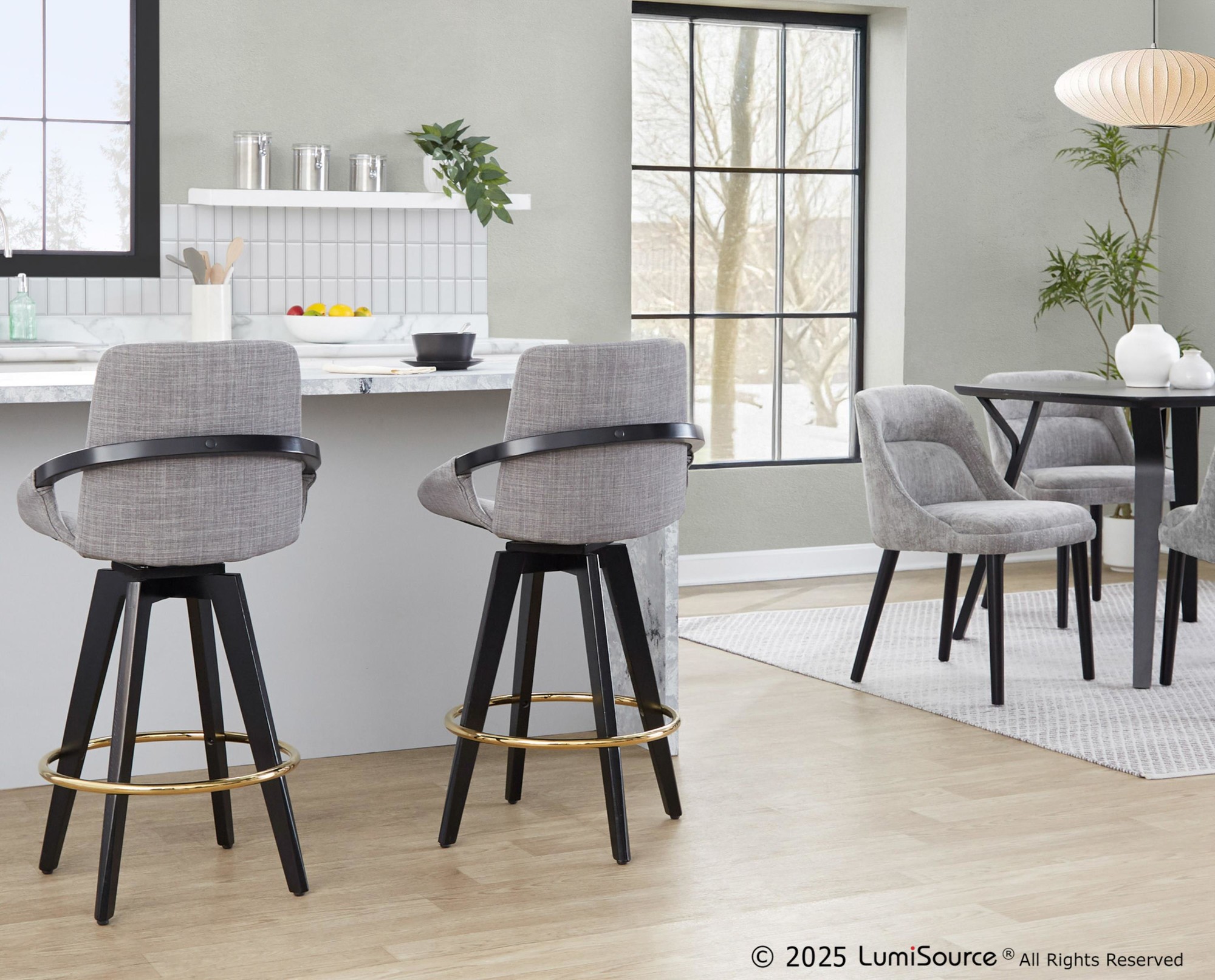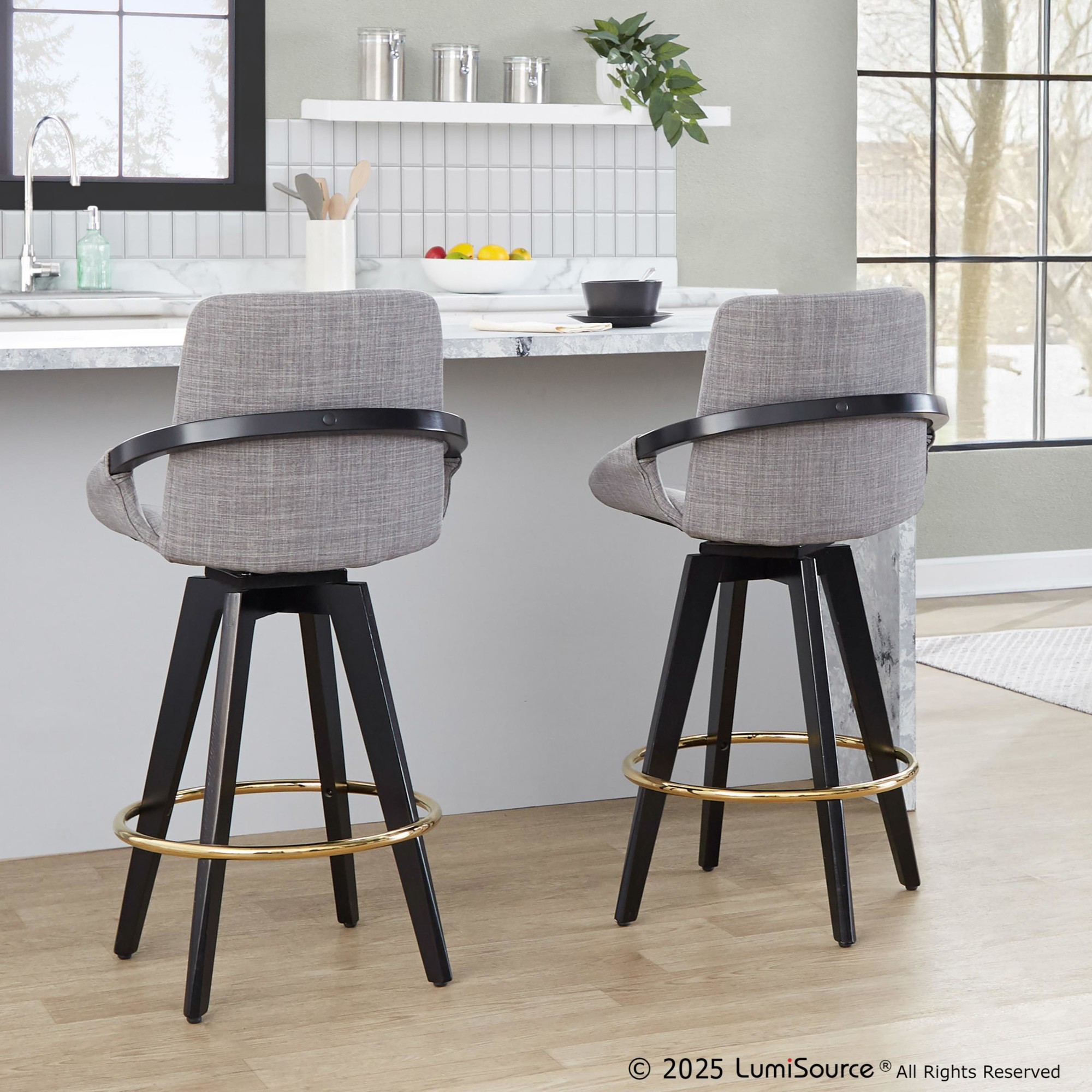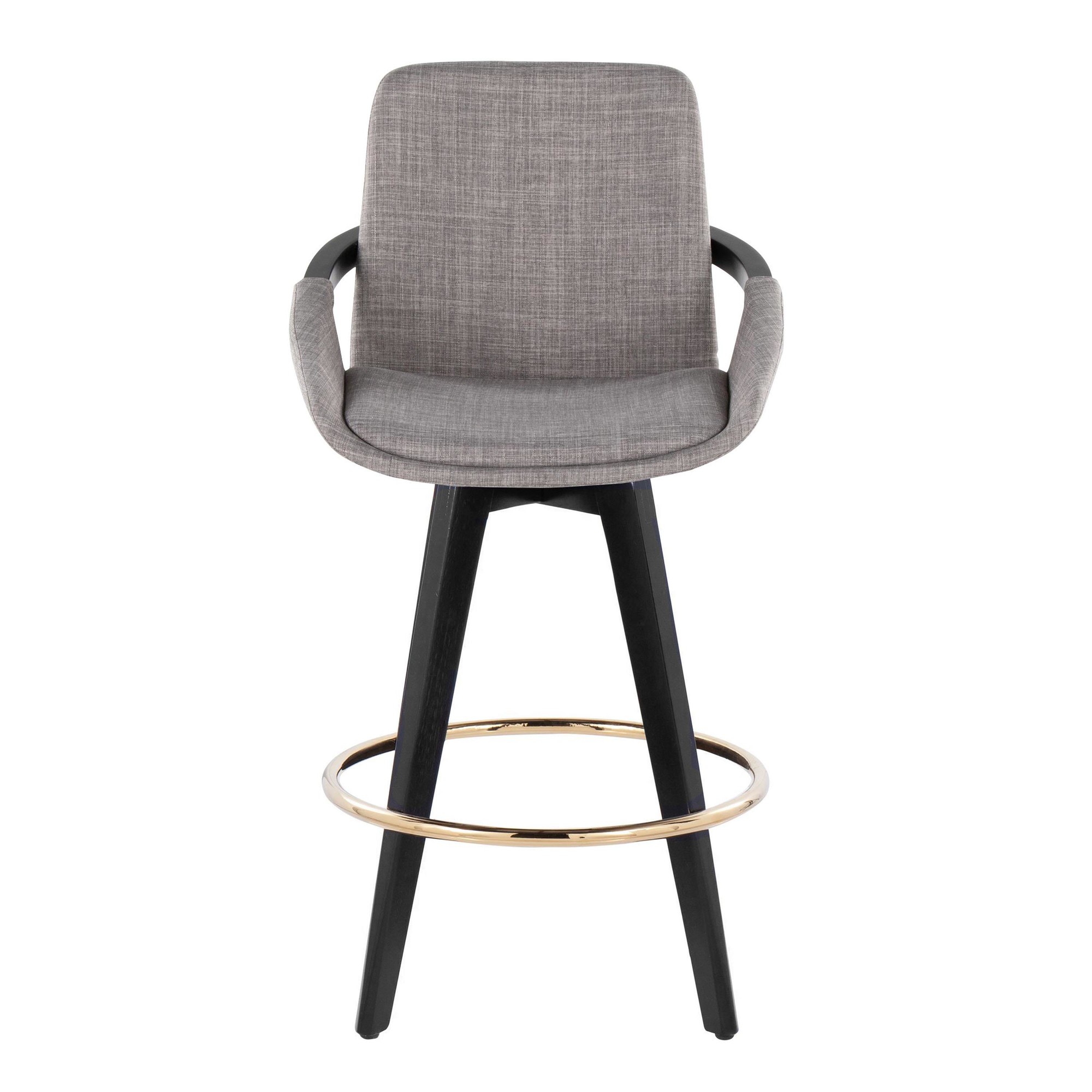 Contemporary inspired, the Cosmo Fixed-Height Counter Stool by LumiSource combines style and comfort! An upholstered seat is accented by stylish black wood armrests and legs, with smooth swivel capability. Available in a variety of color combinations, choose the one that fits your space the best.