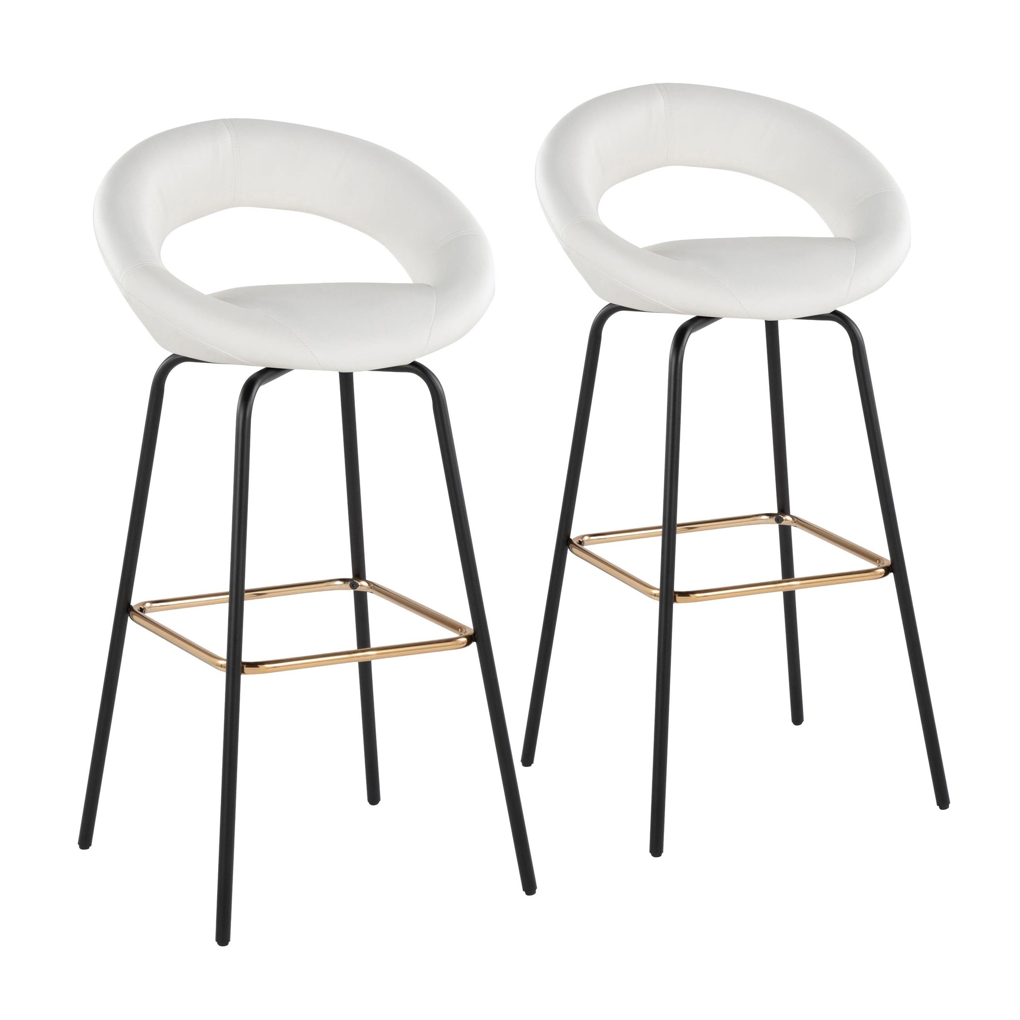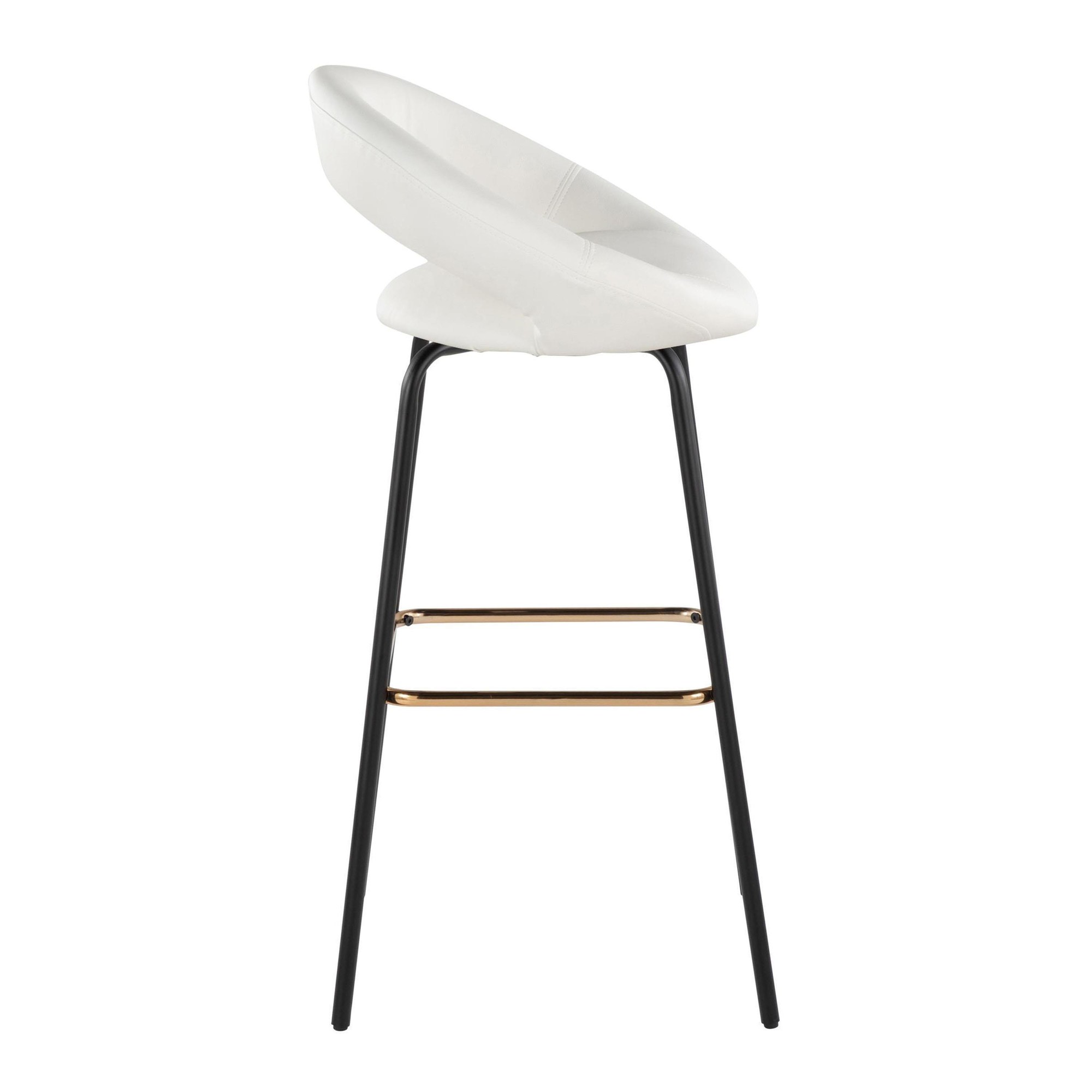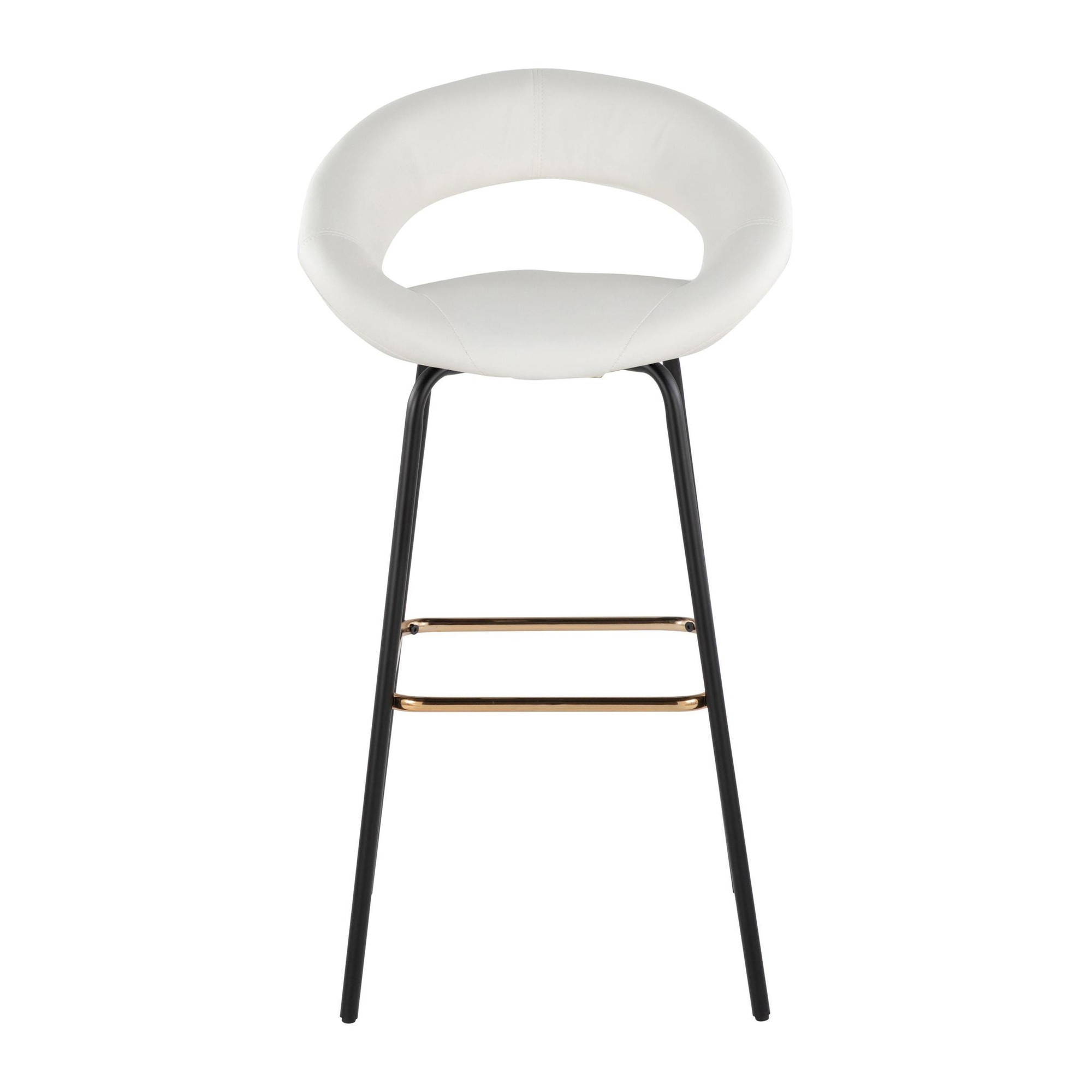 Add character to your space with the sleek Posh Fixed-Height Barstool by LumiSource. The Posh features a unique circular upholstered seat with metal legs, sure to catch anyone's eye. Perfect for any kitchen counter area, this counter stool comes in a variety of upholstery colors that are sure to elevate any space.