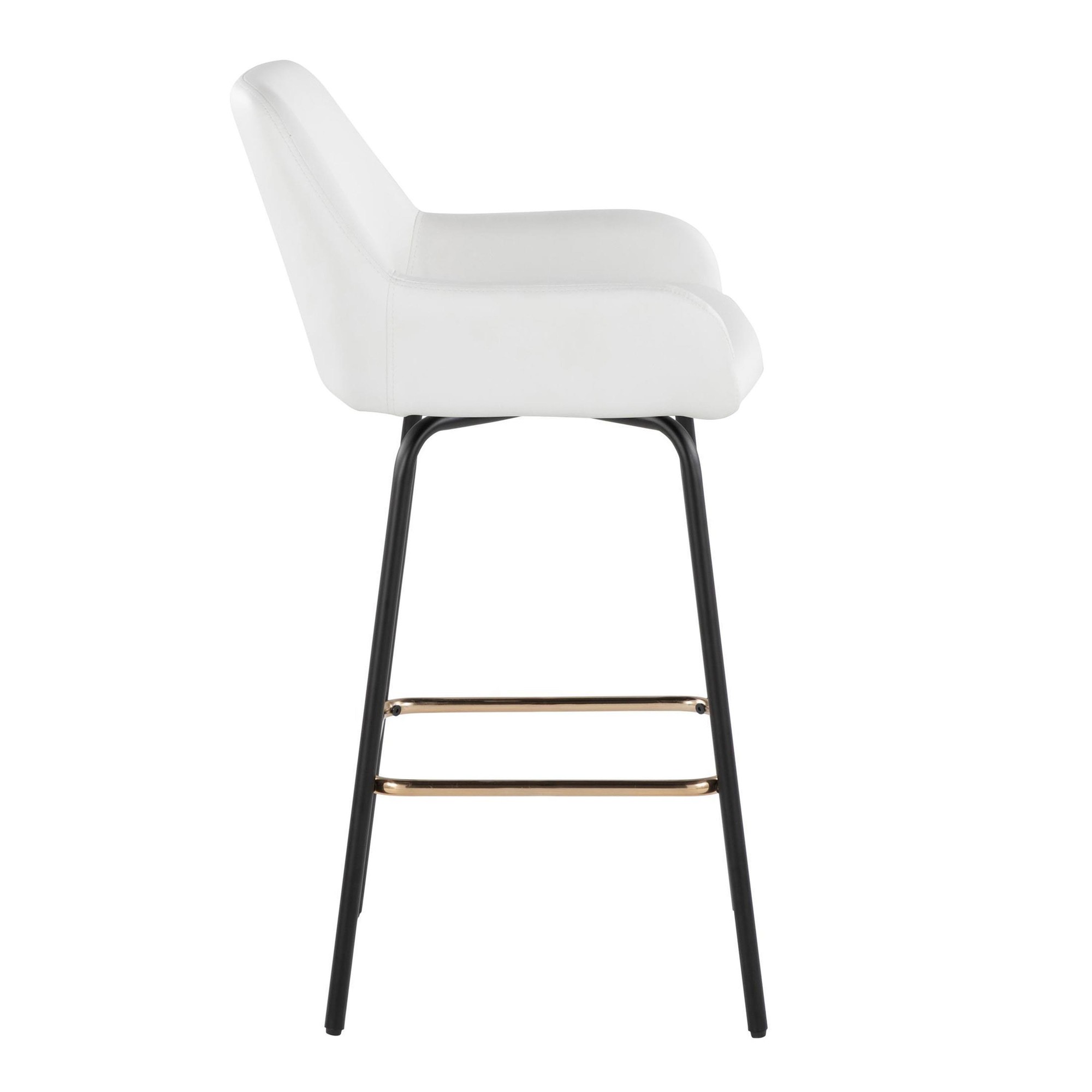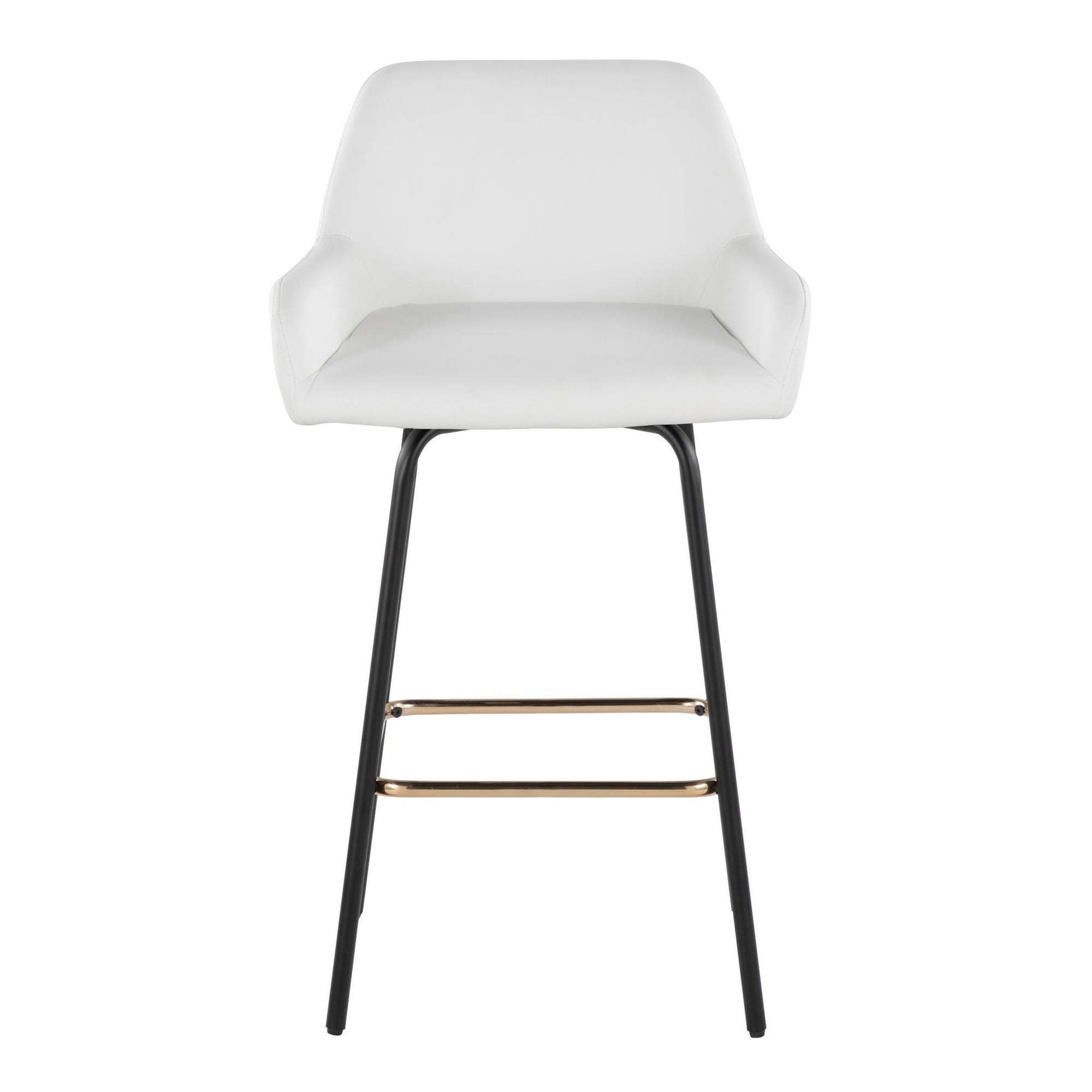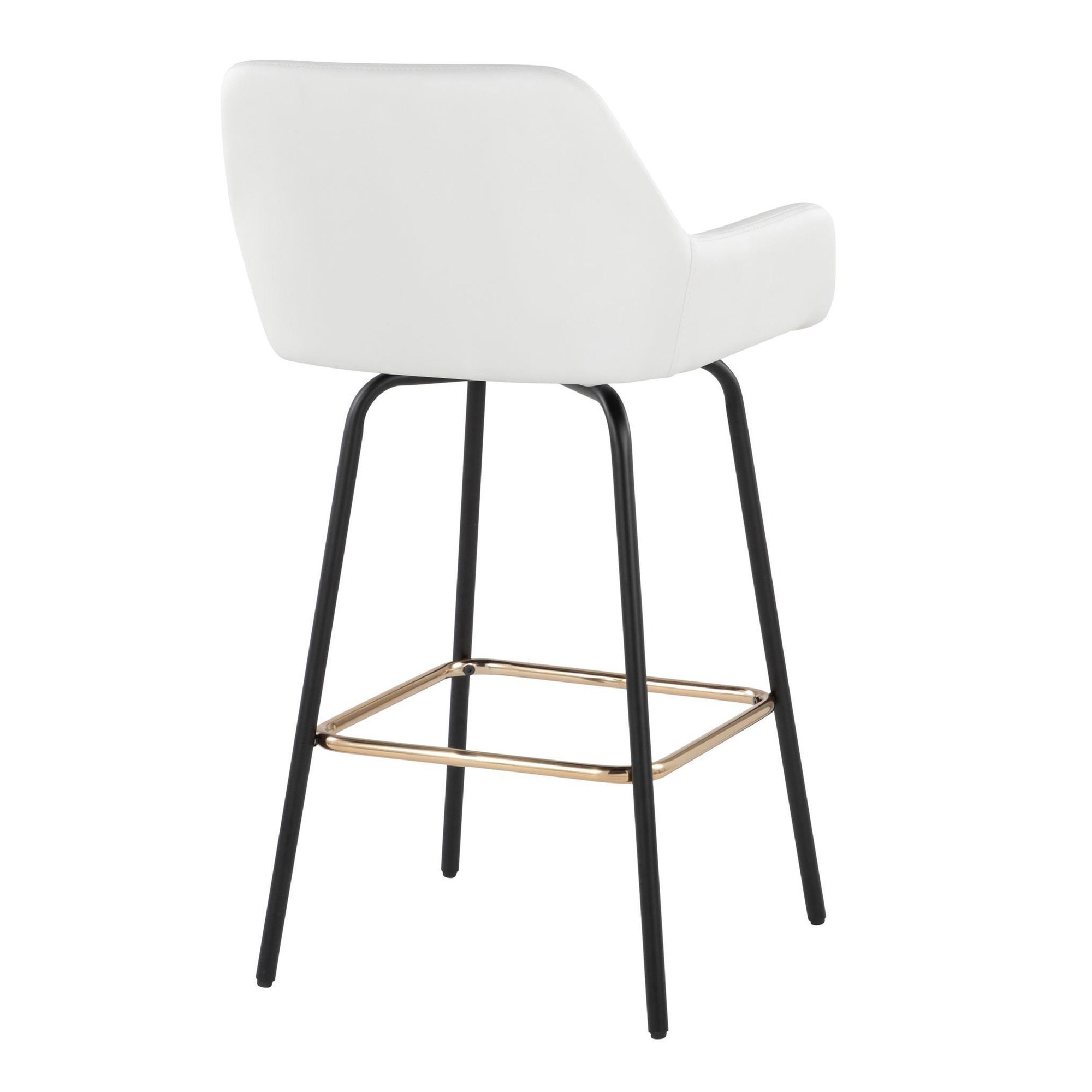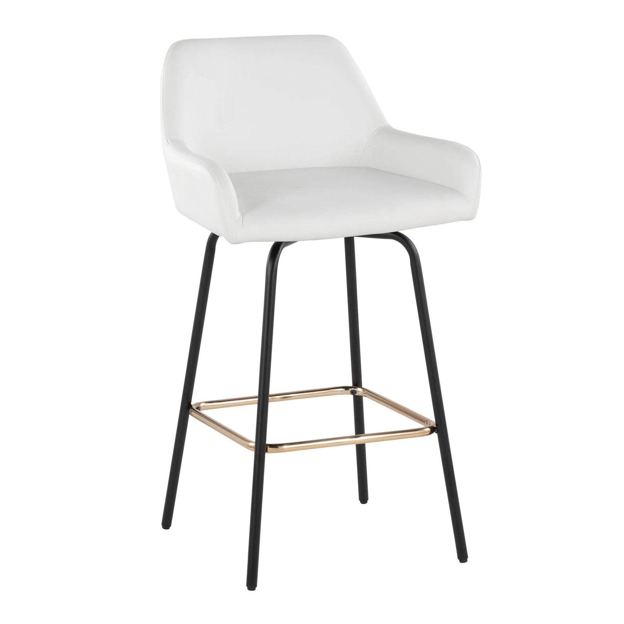 Add stylish and comfortable seating to your kitchen or counter area with the contemporary charm of the Daniella Fixed-Height Counter Stool by LumiSource. Featuring a sleek upholstered swivel seat, padded backrest, and stylish metal legs, this stool is sure to catch eyes. The Daniella is available in a variety of upholstery colors, so select one that suits your space the best!