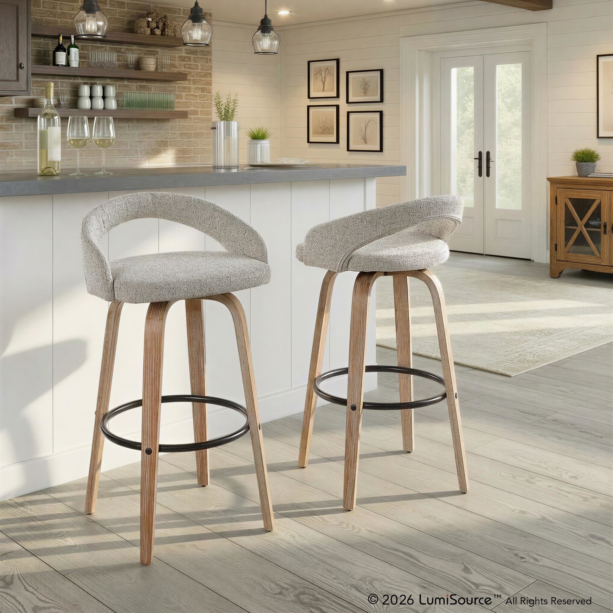 The Grotto Fixed-Height Barstool by LumiSource features a curved low back and rounded legs. This design radiates sophistication while modern features like a cushioned seat that swivels and wood legs with built-in footrest bring this piece into a class all of its own. Available in various color options, choose the one that suits your space best.