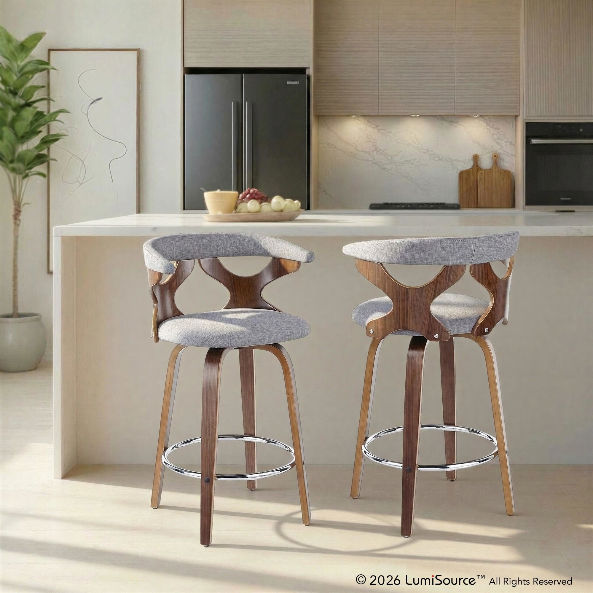 | Color: | Walnut Wood,Light Grey Fabric,Chrome |