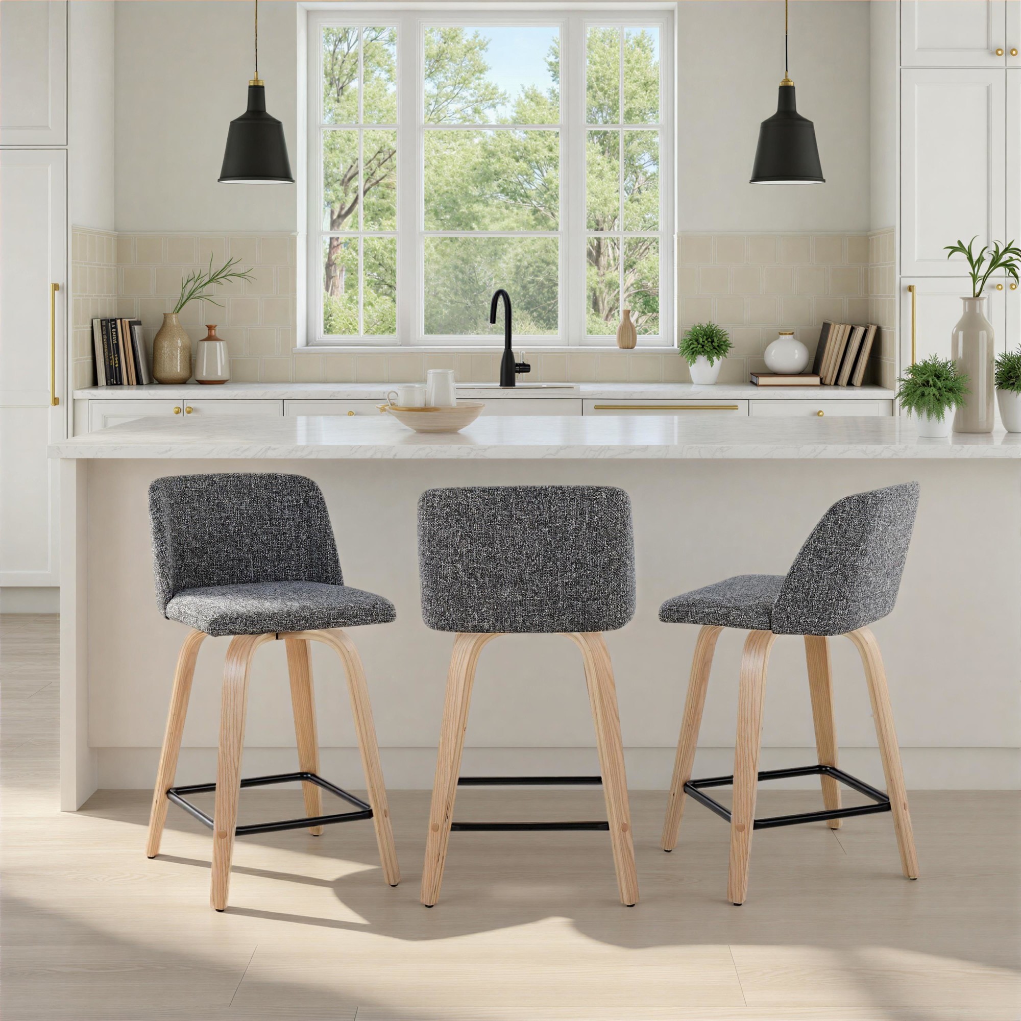 Comfort, modern simplicity, and classic lines define the appealing look of the Toriano Counter Stool by LumiSource. A padded upholstered seat sits on a fixed-height Mid-Century inspired tapered leg base with a round footrest. Available in various colors, choose the one that suits your space best!